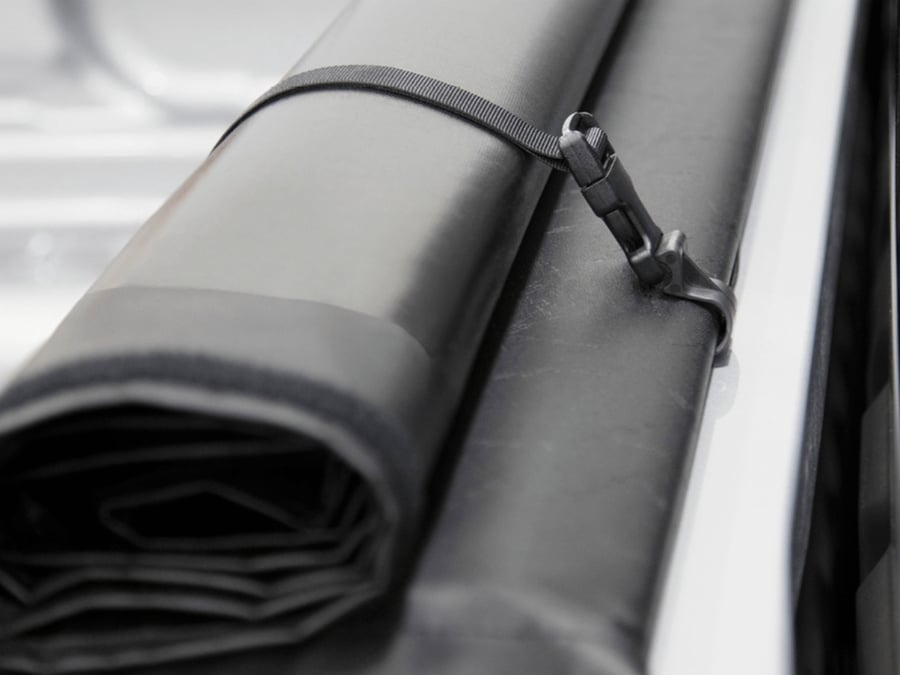 • Full Bed Access: Rolls up completely without removing the cover; can be secured at the cab with included straps.