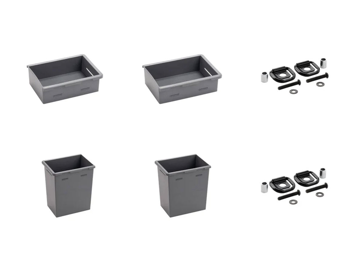 - 2x Shallow Stash Bins (1.5L each) - Ideal for bits, bolts, and quick-access hardware.