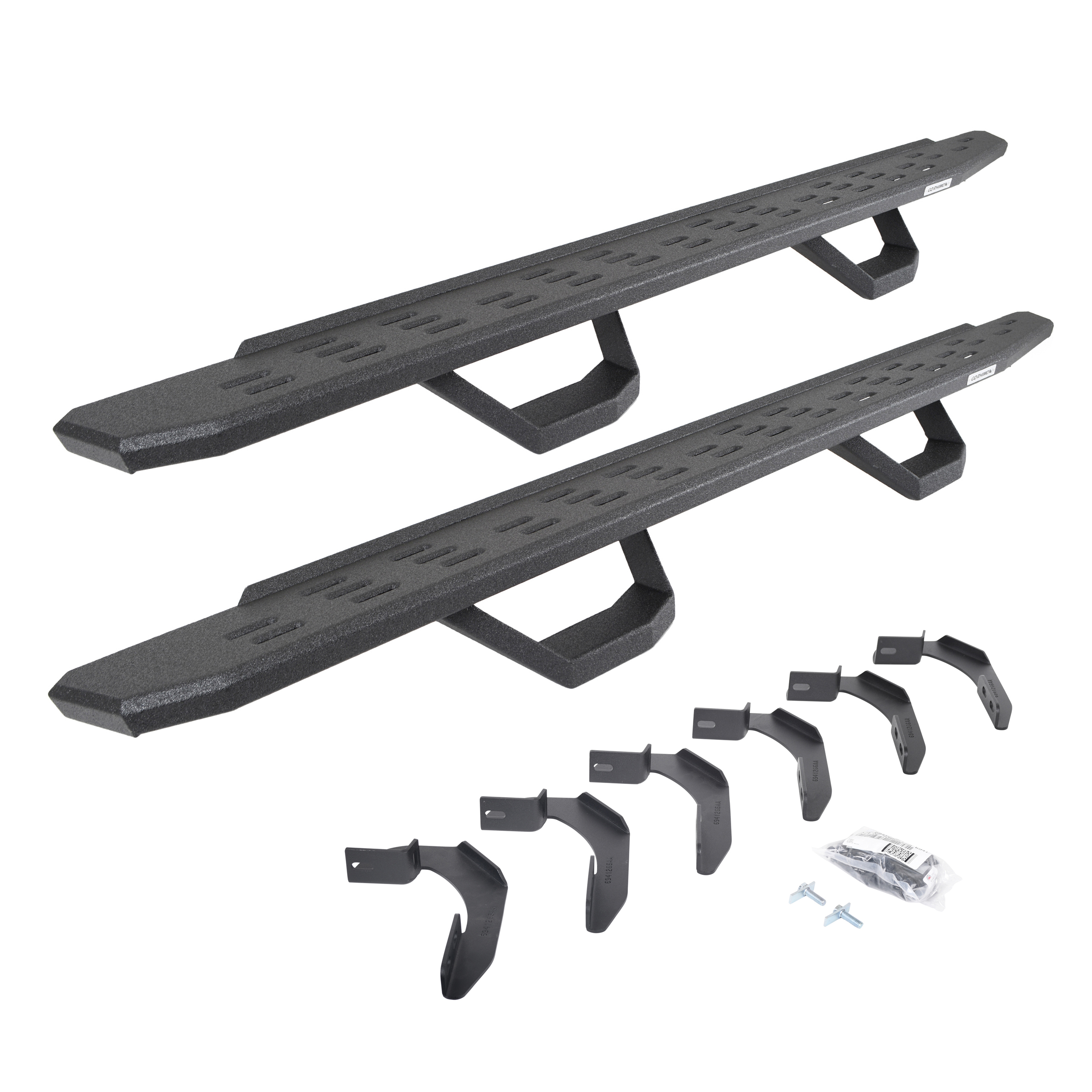 Go Rhino RB30 Running Boards with Brackets & 2 Pairs of Drops Steps Kit - Bedliner Coating