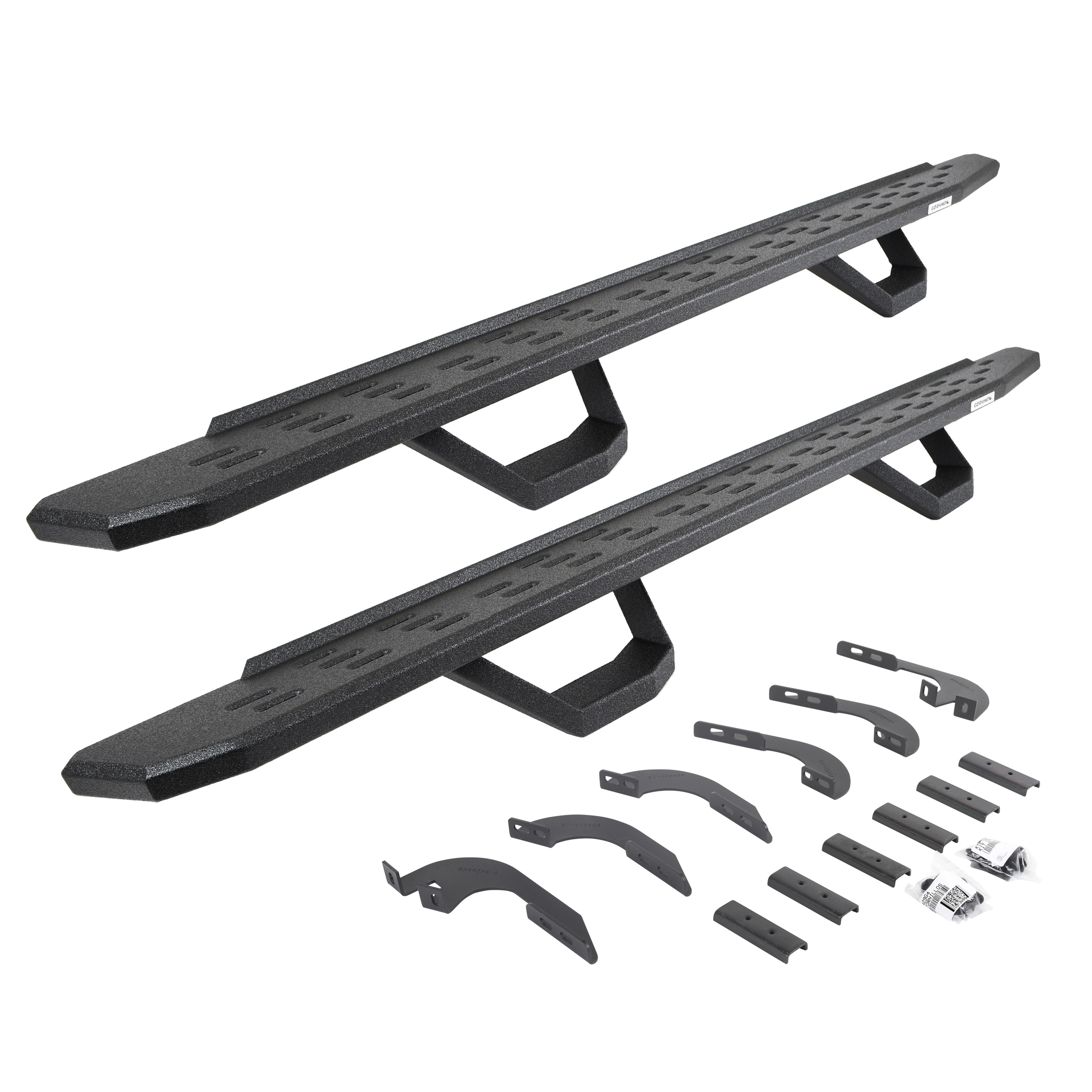 Go Rhino RB30 Running Boards with Brackets & 2 Pairs of Drops Steps Kit - Bedliner Coating