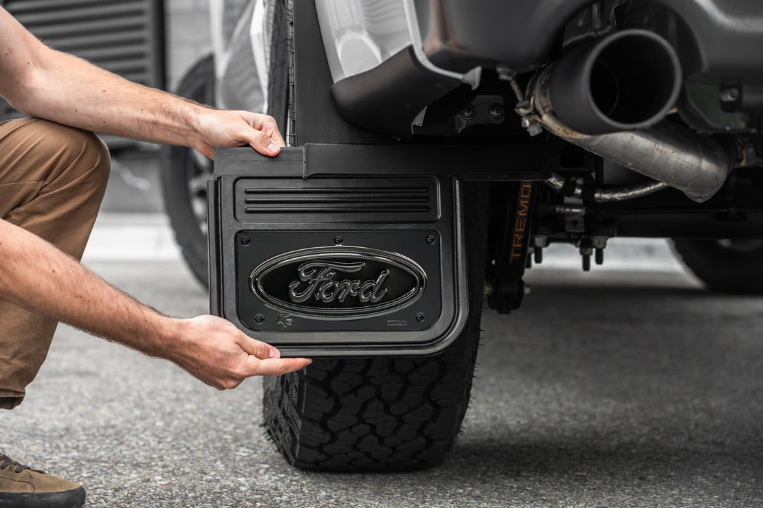 This Gatorback Offset Mud Flap set with black anodized aluminum plates is designed to fit perfectly. The flaps are 12.5" of heavy duty rubber and are attached to a custom fit bracket. The brackets are made from nylon/fiberglass material that gives them the durability you need. The brackets will not fade or chip and have the holes that line up with the factory fasteners already in them for a quick, simple install. The heavy duty rubber ensures that there will not be any debris that gets passed these flaps. These install inside the wheel well and have a 1.5" offset for both front & rear for extra tire clearance and come with all the hardware needed. An added feature of these flaps is the rubber portion is removable from the bracket via a built in channel to allow the flap to slide in and out for easy removal. This gives you the options for extra ground clearance if needed. Giving you the options for extra ground clearance if needed. When you remove the factory mud guard there will be a small hole in the fender that the fender plugs will cover. That is why the color of your truck is needed. The Truck Hardware Gatorback series mud flaps are the industries highest quality heavy duty mud guards! The rugged design and quality finish of these mud flaps make the perfect compliment to your truck. Featuring a 1/2" thick rubber flap, these mud flaps are sure to impress while they protect your investment.