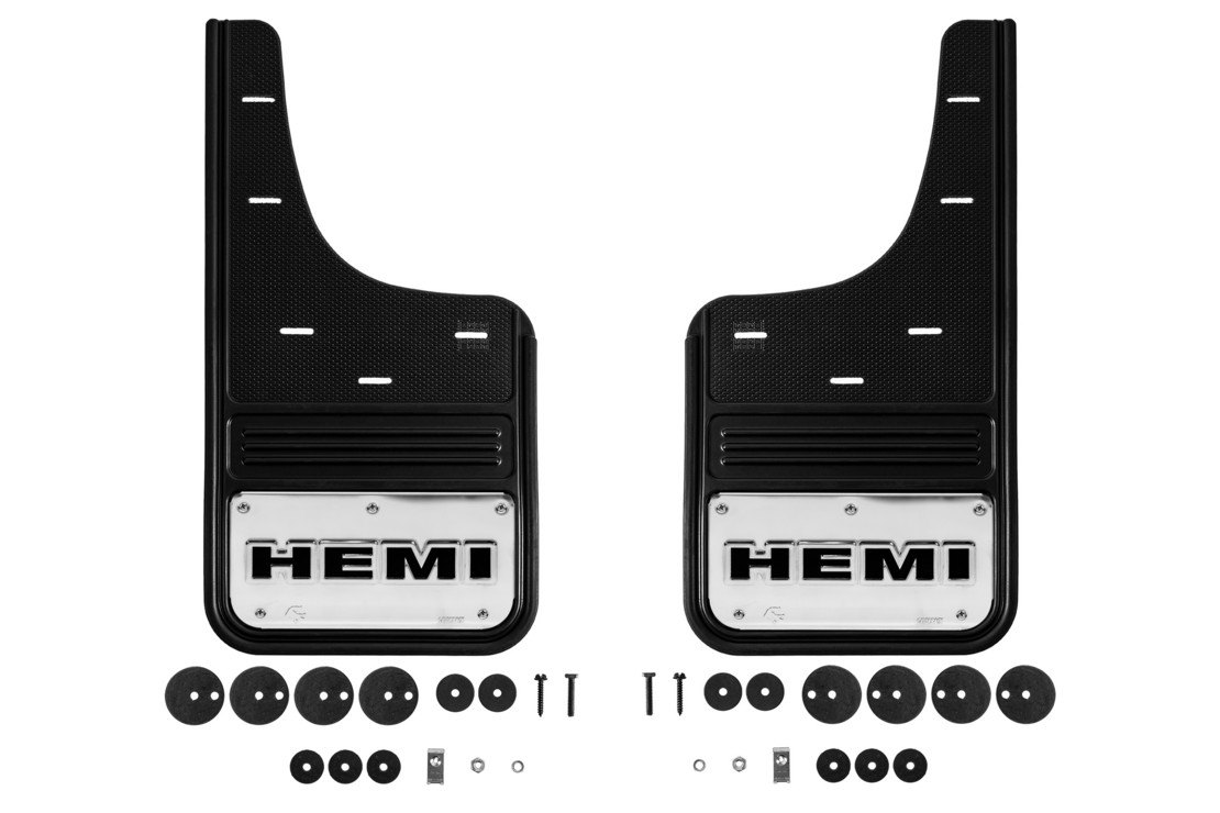The Truck Hardware Gatorback series mud flaps are the industries highest quality heavy duty mud guards! The rugged design and quality finish of these mud flaps make the perfect compliment to your truck. Featuring a 1/2" thick rubber flap with an embossed stainless steel plate, these mud flaps are sure to impress while they protect your investment. These flaps give your Ram truck a custom look that is a step above the competition.