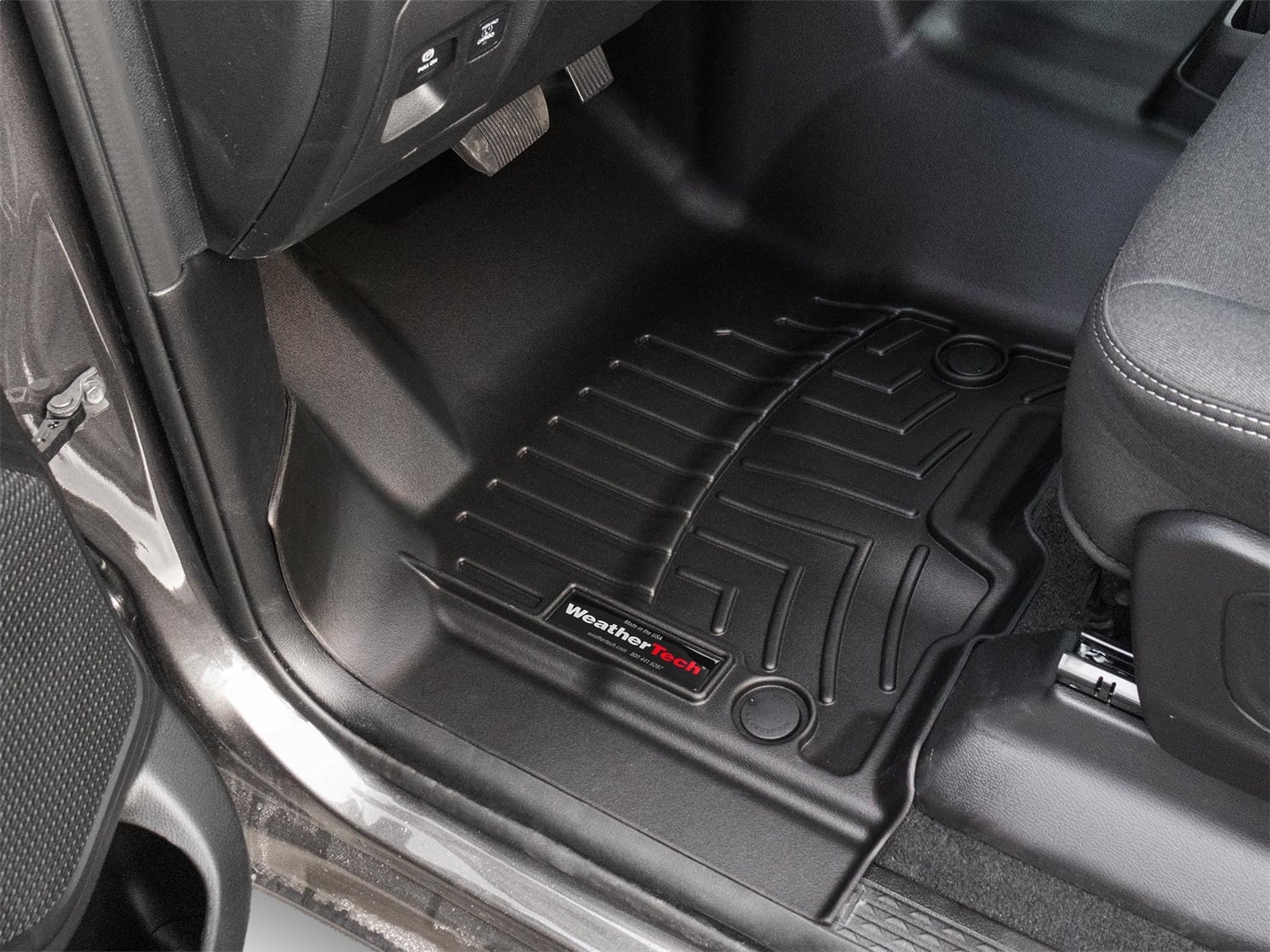 The WeatherTech Floor Liner DigitalFit accurately and completely lines the interior carpet giving "absolute interior protection". The WeatherTech Floor Liner DigitalFit lines the interior carpet up the front, back and even up the sides of the vehicle’s footwell. Digital laser measurements of interior surfaces offer a consistently perfect fit. A patent pending High-Density Tri-Extruded (HDTE) material allows for a rigid core for strength while offering surface friction to the carpet, as well as tactile feel to the surface! Advanced surfacing creates channels that carry fluids and debris to a lower reservoir with further channeling to help minimize fluid movement while driving! Once fluids become trapped in the reservoir, away from shoes and clothing, they are easily removed from the WeatherTech FloorLiner DigitalFit over the door sill. No muss-no fuss! WeatherTech, where Technology and All Weather Protection meet! Rear FloorLiner DigitalFit Rear FloorLiner DigitalFit incorporates many of the same design features as the front FloorLiner DigitalFit. Rear FloorLiner DigitalFit (where offered) is manufactured from a proprietary custom blended TPO (thermopolyolefin) that is not only wear resistant, but also remains flexible under extreme temperatures. Rear FloorLiner DigitalFit is either one piece or two piece depending on the vehicle application. Helps Protect Resale Value WeatherTech FloorLiners protects resale value too! Simply put, the cost of owning a vehicle is the difference between what you pay for it and what you sell it for. There are many factors that influence resale value; miles, exterior condition, maintenance history and of course interior condition. FloorLiner DigitalFit is proudly designed, engineered and manufactured with American made tooling in the USA. FloorLiner DigitalFit is designed for vehicles with factory carpet installed when manufactured. They will not fit vehicles with vinyl floors unless otherwise specified. Please take your old floor mats out before installing your new WeatherTech FloorLiner DigitalFit. Backed by WeatherTech's 3 year warranty.
