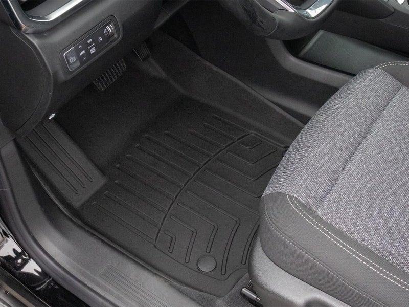 The WeatherTech Floor Liner DigitalFit accurately and completely lines the interior carpet giving "absolute interior protection". The WeatherTech Floor Liner DigitalFit lines the interior carpet up the front, back and even up the sides of the vehicle’s footwell. Digital laser measurements of interior surfaces offer a consistently perfect fit. A patent pending High-Density Tri-Extruded (HDTE) material allows for a rigid core for strength while offering surface friction to the carpet, as well as tactile feel to the surface! Advanced surfacing creates channels that carry fluids and debris to a lower reservoir with further channeling to help minimize fluid movement while driving! Once fluids become trapped in the reservoir, away from shoes and clothing, they are easily removed from the WeatherTech FloorLiner DigitalFit over the door sill. No muss-no fuss! WeatherTech, where Technology and All Weather Protection meet! Rear FloorLiner DigitalFit Rear FloorLiner DigitalFit incorporates many of the same design features as the front FloorLiner DigitalFit. Rear FloorLiner DigitalFit (where offered) is manufactured from a proprietary custom blended TPO (thermopolyolefin) that is not only wear resistant, but also remains flexible under extreme temperatures. Rear FloorLiner DigitalFit is either one piece or two piece depending on the vehicle application. Helps Protect Resale Value WeatherTech FloorLiners protects resale value too! Simply put, the cost of owning a vehicle is the difference between what you pay for it and what you sell it for. There are many factors that influence resale value; miles, exterior condition, maintenance history and of course interior condition. FloorLiner DigitalFit is proudly designed, engineered and manufactured with American made tooling in the USA. FloorLiner DigitalFit is designed for vehicles with factory carpet installed when manufactured. They will not fit vehicles with vinyl floors unless otherwise specified. Please take your old floor mats out before installing your new WeatherTech FloorLiner DigitalFit. Backed by WeatherTech's 3 year warranty.