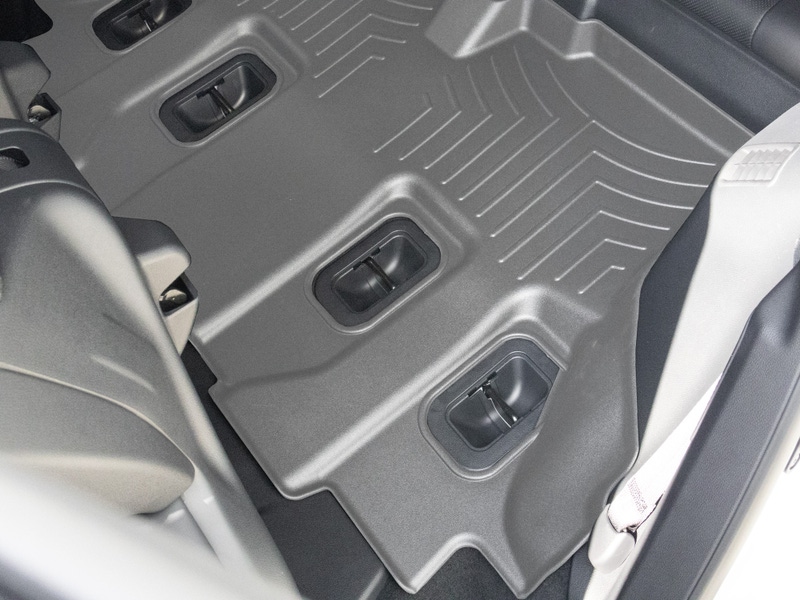 Rear FloorLiner DigitalFit incorporates many of the same design features as the front FloorLiner DigitalFit. Rear FloorLiner DigitalFit (where offered) is manufactured from a proprietary custom blended TPO (thermopolyolefin) that is not only wear resistant, but also remains flexible under extreme temperatures. Rear FloorLiner DigitalFit is either one piece or two piece depending on the vehicle application.