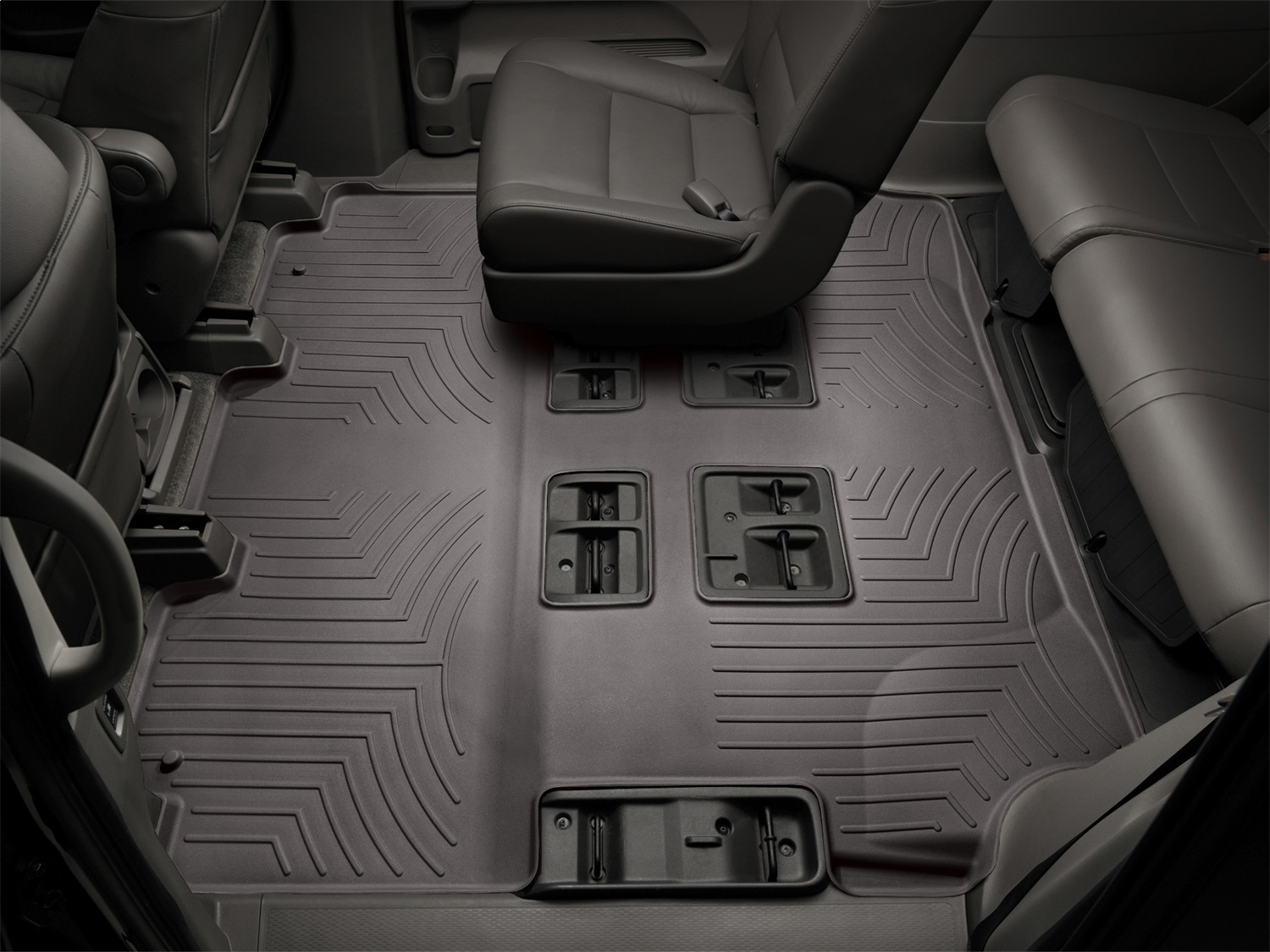 Rear FloorLiner DigitalFit incorporates many of the same design features as the front FloorLiner DigitalFit. Rear FloorLiner DigitalFit (where offered) is manufactured from a proprietary custom blended TPO (thermopolyolefin) that is not only wear resistant, but also remains flexible under extreme temperatures. Rear FloorLiner DigitalFit is either one piece or two piece depending on the vehicle application.